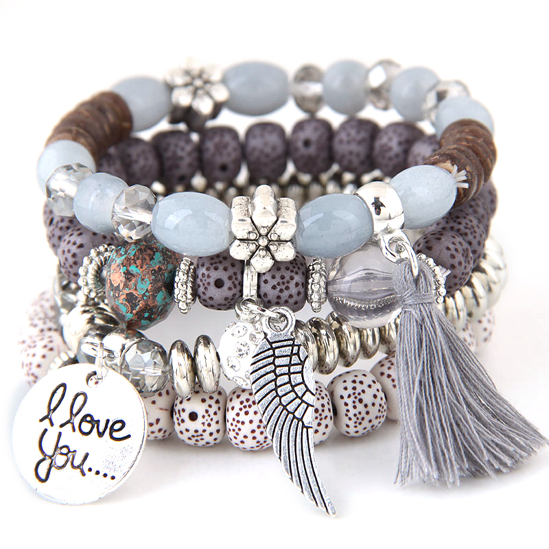 Komplet bransoletek z koralikami na gumce chwost 1kpl
