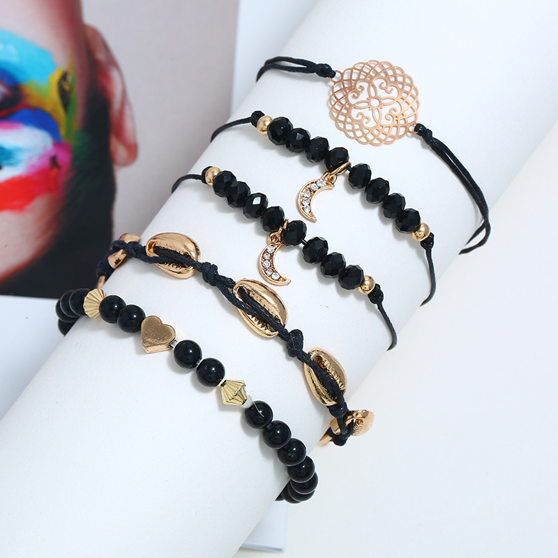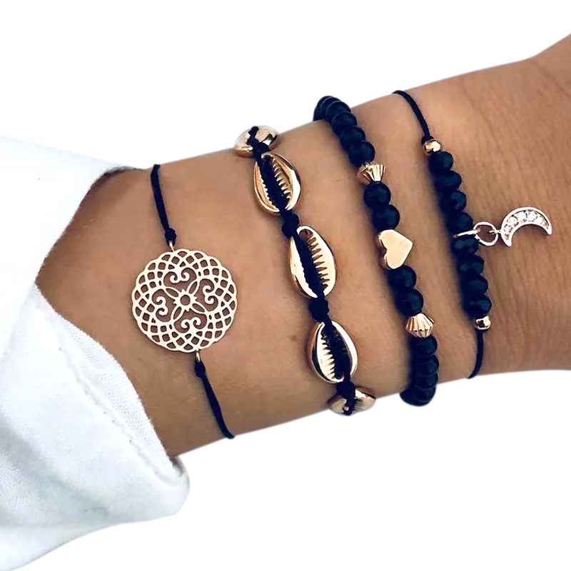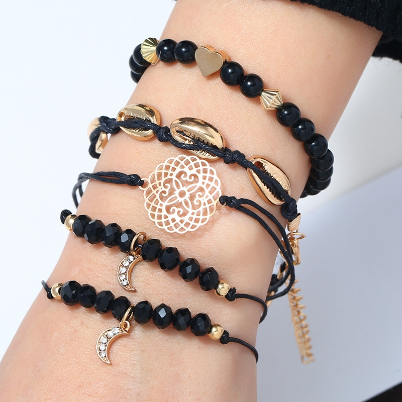 Komplet bransoletek z koralikami i muszelkami celebrytka 1kpl