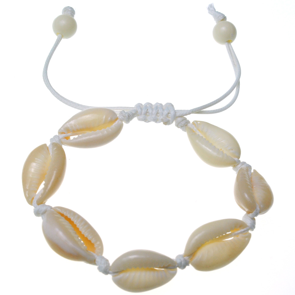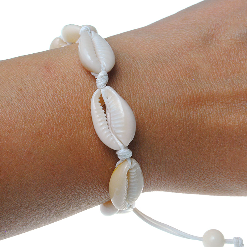 Bransoletka sznurkowa biała z muszelkami 1szt