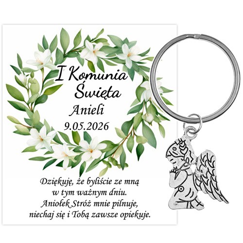 PODZIĘKOWANIE dla gości breloczek Brelok 1 KOMUNIA ŚWIĘTA ANIOŁEK PAMIĄTKA 1B