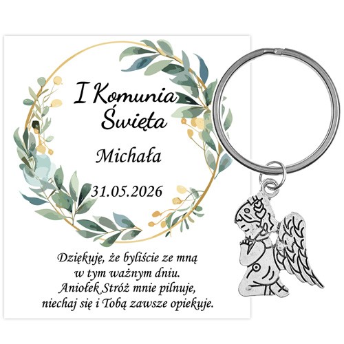 PODZIĘKOWANIE dla gości breloczek Brelok 1 KOMUNIA ŚWIĘTA ANIOŁEK PAMIĄTKA 1F
