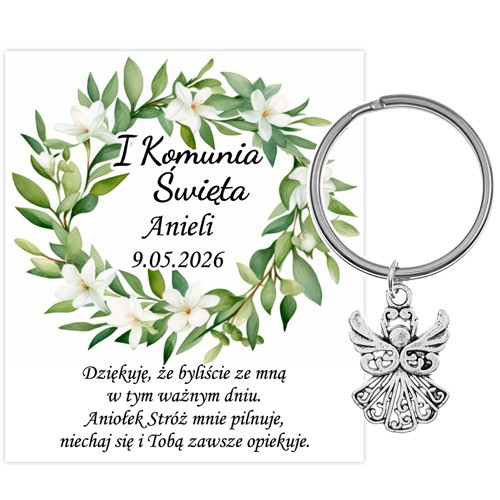 PODZIĘKOWANIE dla gości breloczek Brelok 1 KOMUNIA ŚWIĘTA ANIOŁEK PAMIĄTKA 2B
