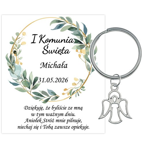 PODZIĘKOWANIE dla gości breloczek Brelok 1 KOMUNIA ŚWIĘTA ANIOŁEK PAMIĄTKA 3F