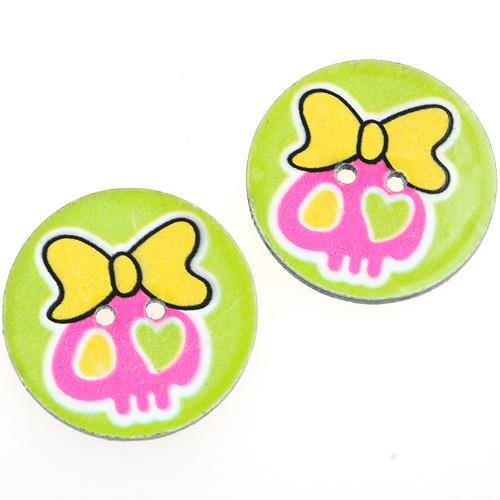 Guziki okrągłe guziczki zielone czaszka z kokardką 25mm 5szt