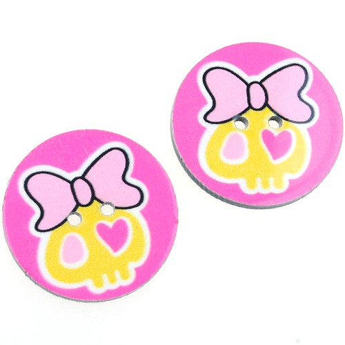 Guziki okrągłe guziczki różowe czaszka z kokardką 25mm / 5szt