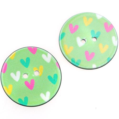 Guziki okrągłe guziczki zielone w serduszka 25mm 5szt