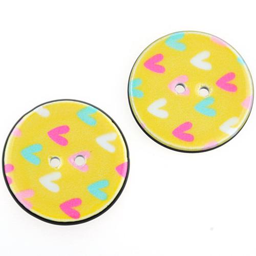 Guziki okrągłe guziczki żółte w serduszka 25mm 5szt