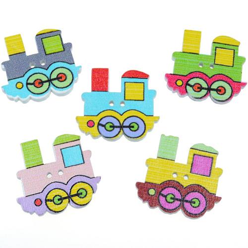 MIX guziki lokomotywa ciuchcia duże drewniane 24mm 6szt