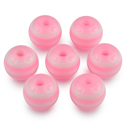 Koraliki kulki w paski akrylowe j.różowe 8mm 10szt