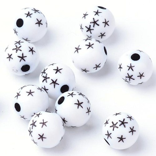 Koraliki kulki kule białe w gwiazdki czarne akrylowe 7mm 50szt