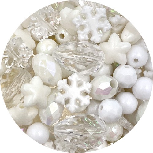 MIX koraliki akrylowe świąteczne / białe / 6-17mm / 50szt-13603