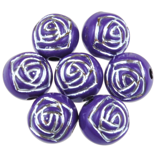 Koraliki róże zdobione akrylowe fioletowe 8mm 10szt