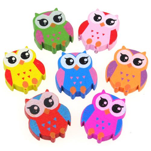 Miks koraliki sowy / drewniane / multikolor / 22x18mm / 10szt-6435