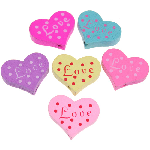 MIX koraliki serca serduszka drewniane multikolor 23x19mm 3szt