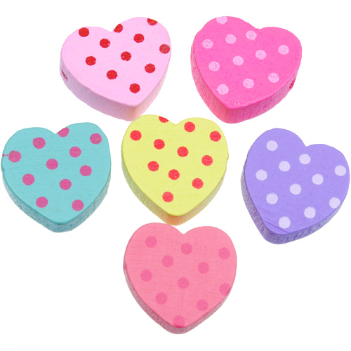 MIX koraliki serca pastelowe drewniane multikolor 18mm 4szt