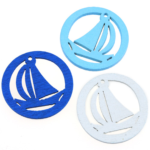 MIX zawieszki statek żaglówka drewniane multikolor 24mm 3szt