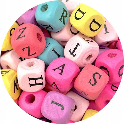 MIX koraliki kostki literki drewniane 10mm 30szt