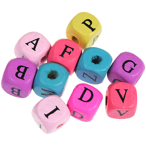 Miks koraliki kostki literki / drewniane / 10mm / 30szt-10784