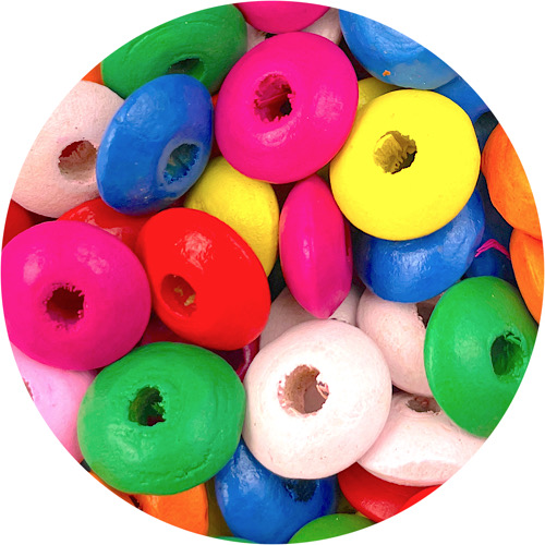 MIX koraliki płaskie dyski drewniane multikolor 14x6mm 50szt