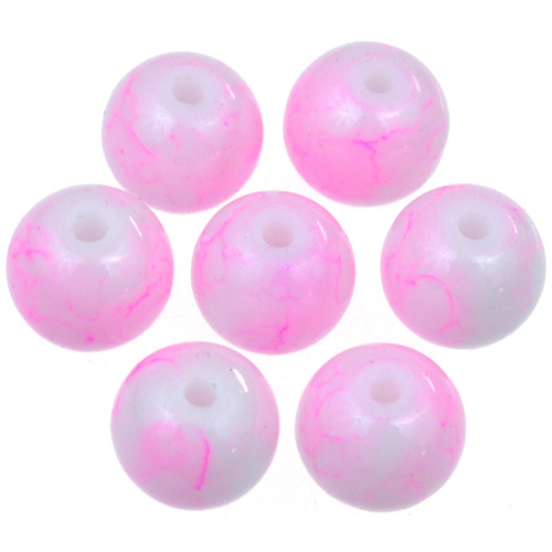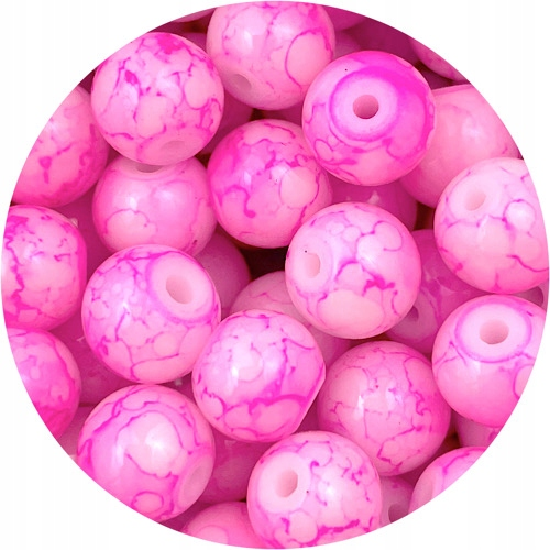 Koraliki powlekane marmurkowe szklane różowe 8mm 50szt