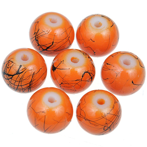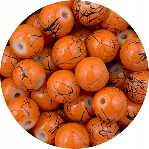 Koraliki powlekane czarna nić szklane pomarańczowe 8mm 50szt