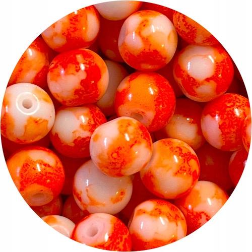 Koraliki powlekane marmurkowe szklane pomarańczowe 8mm 50szt
