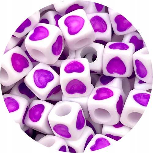 Koraliki modułowe z sercem akrylowe fioletowe 7x7mm 11,0g 50szt