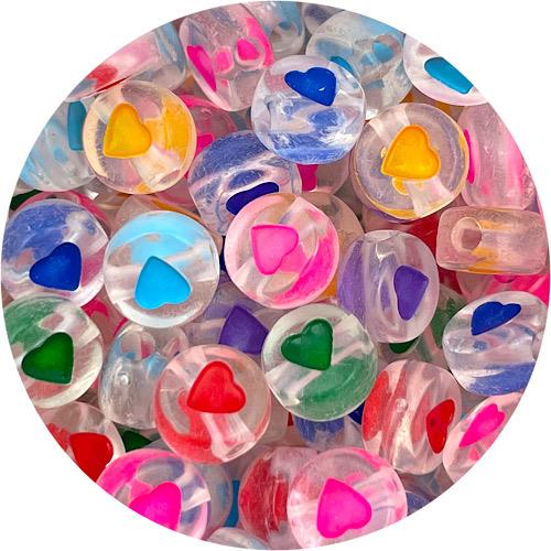 Miks koraliki z sercem serduszko / akrylowe / bezbarwne / 7x4mm / 12.2g / 100szt-13118