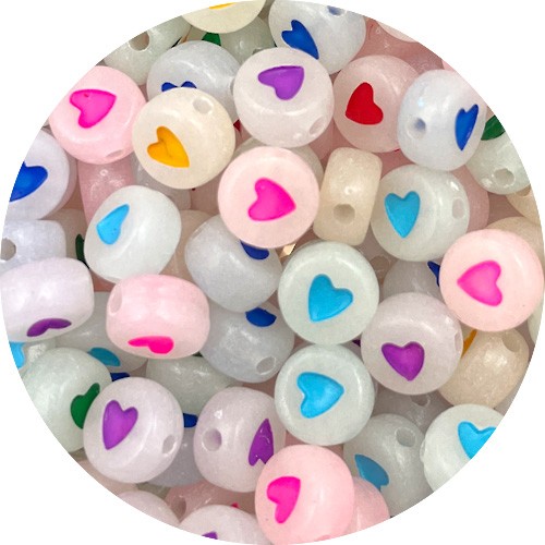 Mix koraliki okrągłe z sercem świecące w ciemności akrylowe 7x4mm 6,8g 50szt