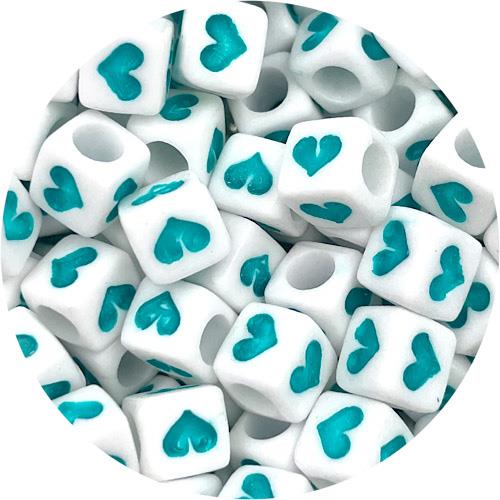 Koraliki z sercem modułowe / akrylowe / turkusowe / 6.5mm / 50szt-13166