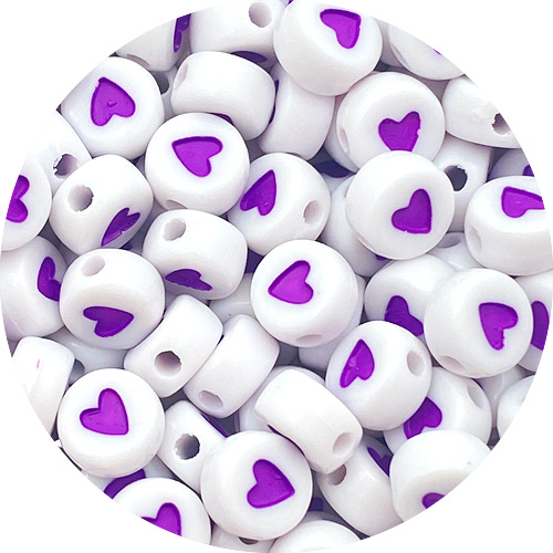 Koraliki z fioletowym sercem / akrylowe / biały /  7x3.5mm / 50szt-12435