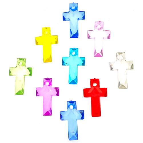 MIX zawieszki fasetowane krzyżyki akrylowe 16x10mm 16,3g 50szt