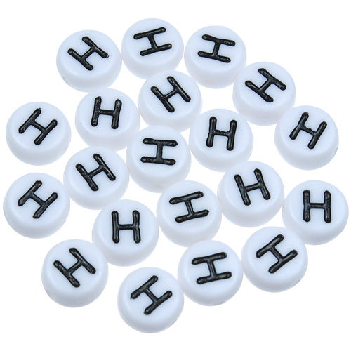 Produkt dostępny literki pakowane po 20szt Koraliki okrągłe literki alfabet litera R akrylowe biały, literka czarna 7x4mm 20szt Brak OL00R 2,49 zł
