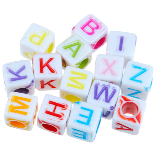 MIX koraliki kostki literki akrylowe 6mm 15,6g 100szt