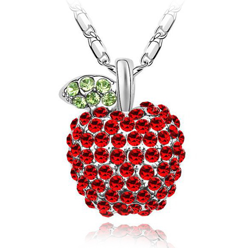 Naszyjnik z cyrkoniami jabłuszko apple srebrny, czerwony 43cm 1szt