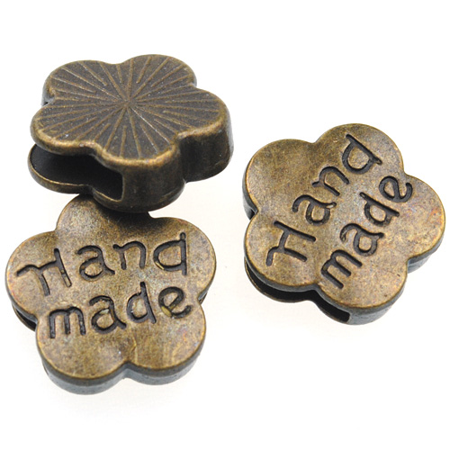 Nakładka na sznurki rzemienie kwiatek hand made metalowa brązowa 16mm 1szt