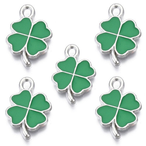 Zawieszka emaliowana koniczynka metalowa srebrna zielona 18mm 5szt