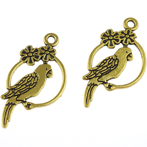 Zawieszka papuga stop metalu złoty 28x14mm 2szt