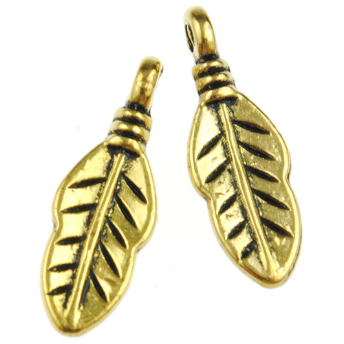 Zawieszka piórko stop metalu złoty 17x6mm 6szt