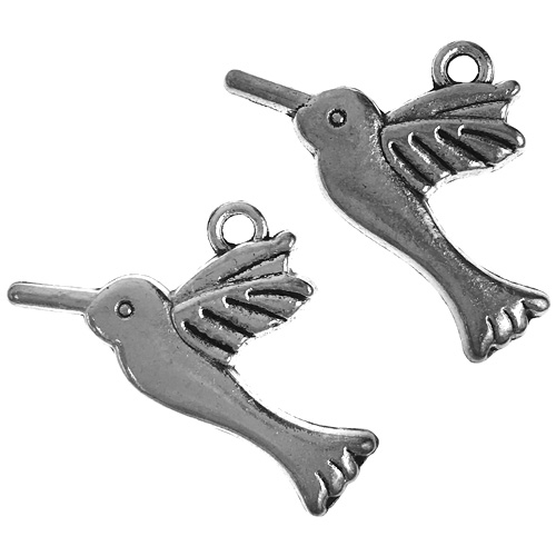 Zawieszka koliber ptaszek metalowa srebrny 14x25x2mm 4szt
