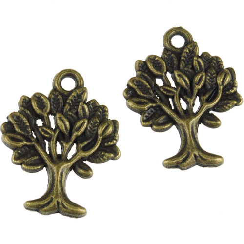 Zawieszka drzewko szczęścia stop metalu brązowy 22x17mm 2szt