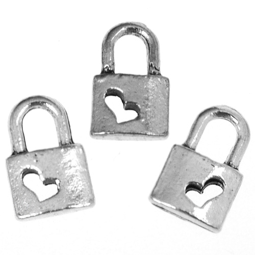 Zawieszka kłódka z sercem / stop metalu / srebrny / 10.5x7x2.5mm / 6szt-11180