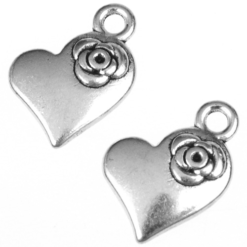 Zawieszka serce róża kwiatek stop metalu srebrny 15x11x3mm 2szt