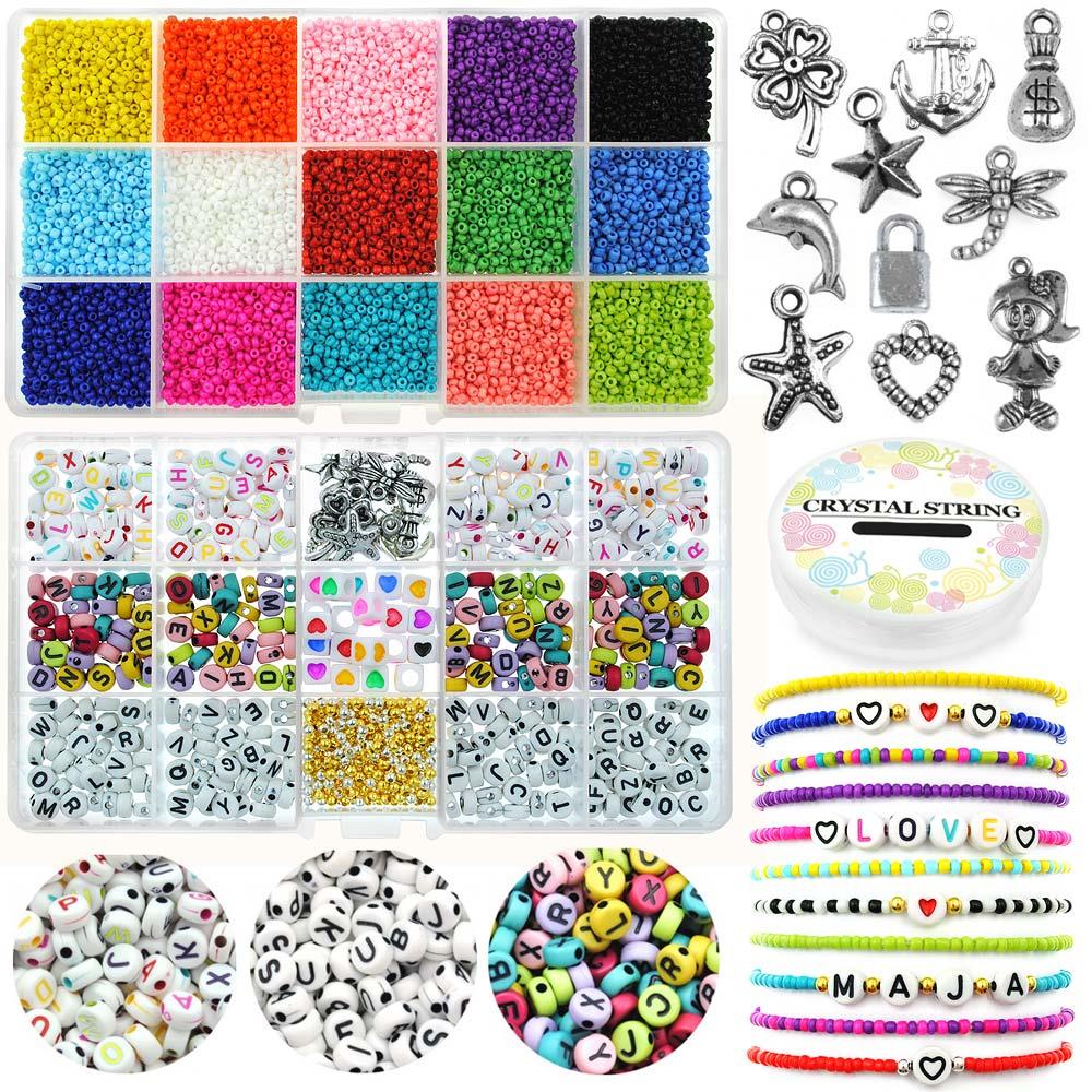 Zestaw do robienia bransoletek z koralików szklanych mix kolorów 10 zawieszek 125x65mm
