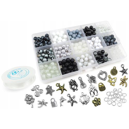 Produkt dostępny Zestawy do tworzenia biżuterii Zestaw do robienia bransoletek z koralików szklanych mix kolorów 20 zawieszek 175x100mm Brak KD06D 45,00 zł