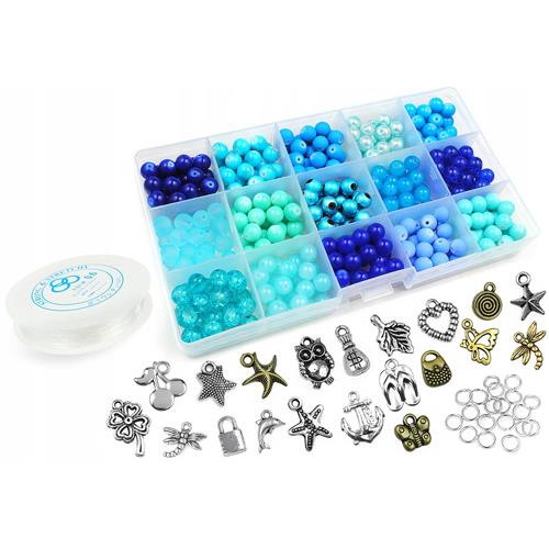Produkt dostępny Zestawy do tworzenia biżuterii Zestaw do robienia bransoletek z koralików szklanych niebiesko-turkusowy 10 zawieszek... Brak KM04D 29,99 zł