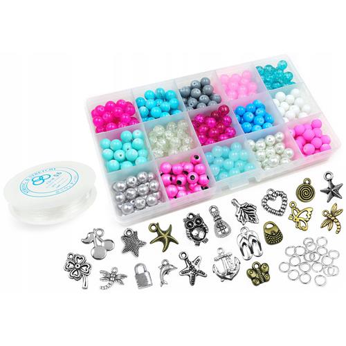 Produkt dostępny Zestawy do tworzenia biżuterii Zestaw do robienia bransoletek z koralików szklanych mix kolorów 20 zawieszek 175x100mm Brak KD06D 45,00 zł