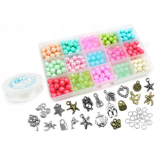 Produkt dostępny Zestawy do tworzenia biżuterii Zestaw do robienia bransoletek z koralików szklanych mix kolorów 20 zawieszek 175x100mm Brak KD06D 45,00 zł