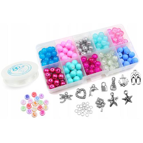 Produkt dostępny Zestawy do tworzenia biżuterii Zestaw do robienia bransoletek z koralików szklanych mix kolorów 10 zawieszek 125x65mm Brak KM06D 26,99 zł