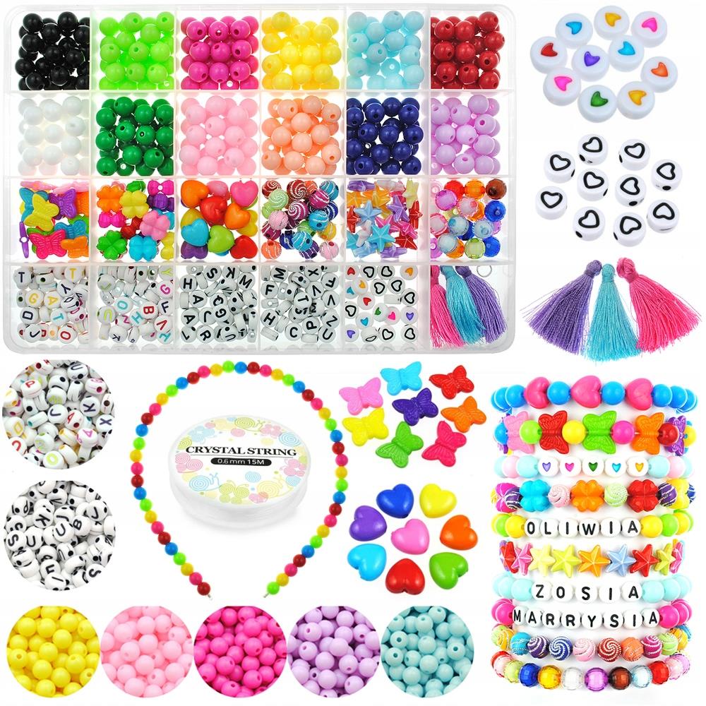 Zestaw do robienia bransoletek z koralików szklanych mix kolorów 10 zawieszek 125x65mm